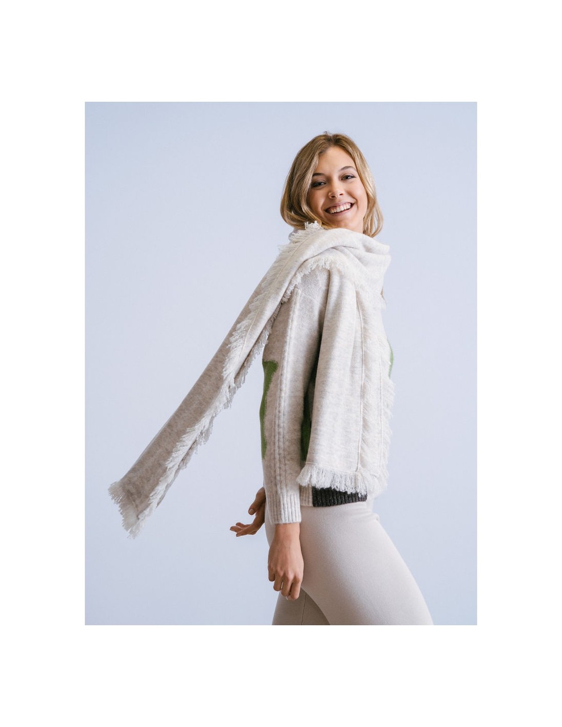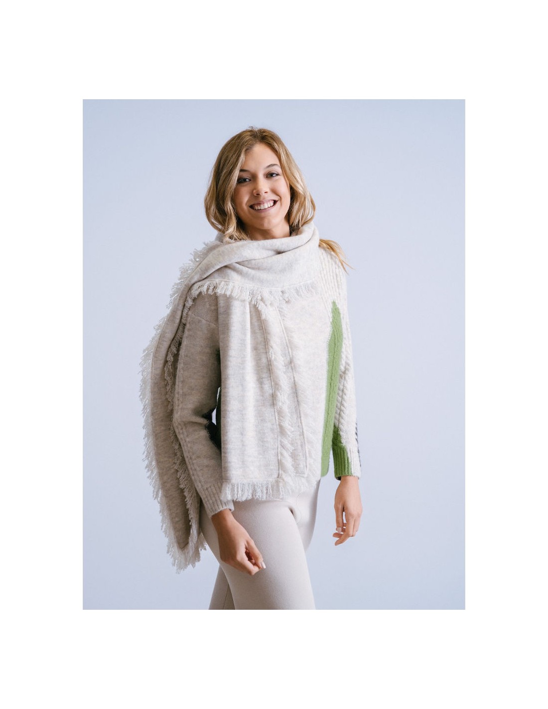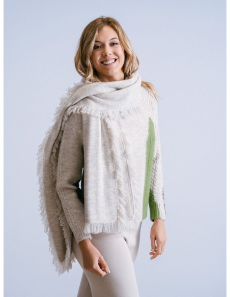 Bufanda de punto en color liso con el detalle de los flecos por todo el borde de la bufanda.