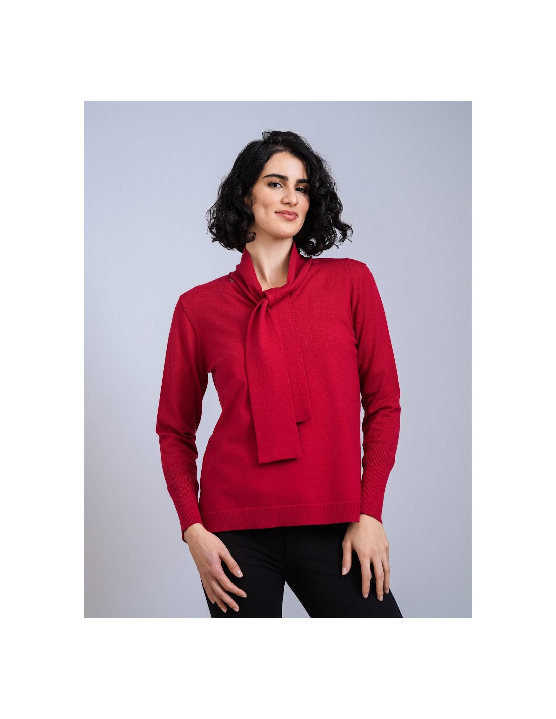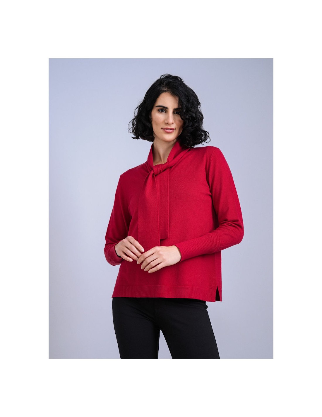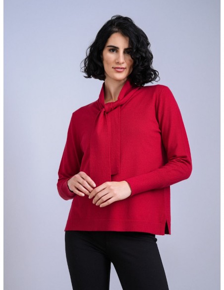 Jersey con cuello a pico. Detalle de lazada en el cuello con una tira unida al cuello. Con abertura en ambos laterales.
