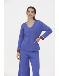 Pantalón culotte. De punto. Tiene como detalle la franja marrón combinada con una raya lima en la cintura.