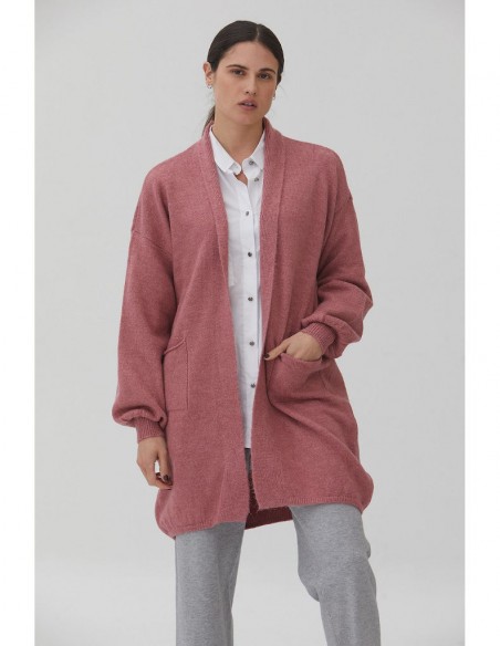 Cardigam oversize con manga caída sin abotonadura y bolsillos.