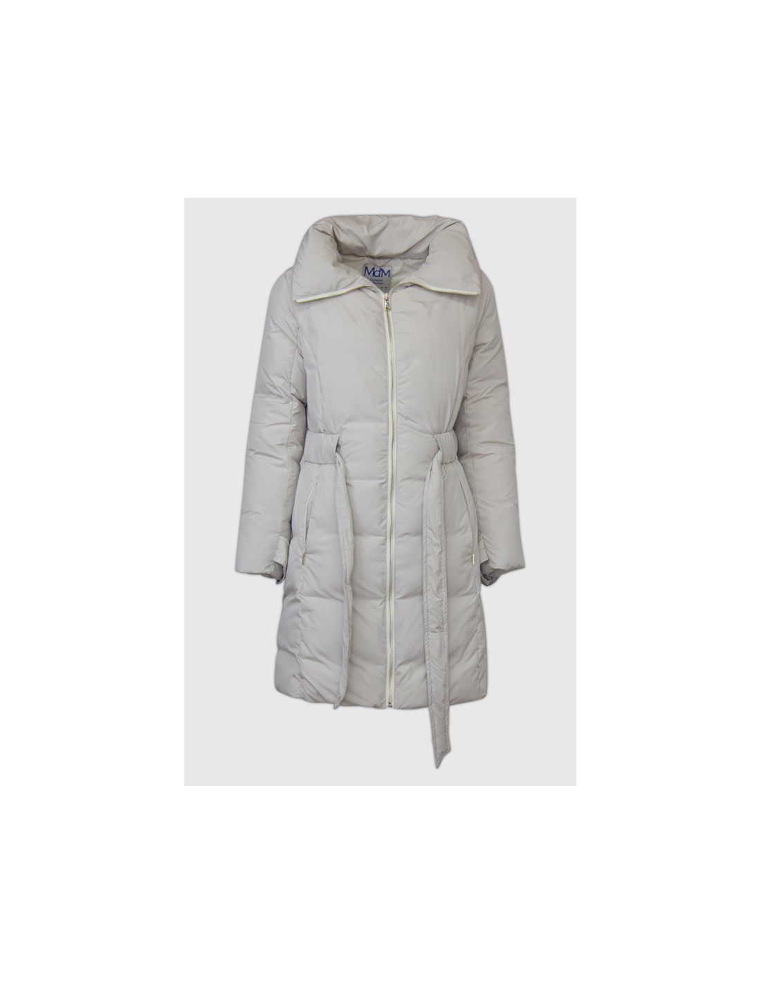 Parka 34 con cinturón en color crudo y cierre con cremallera.